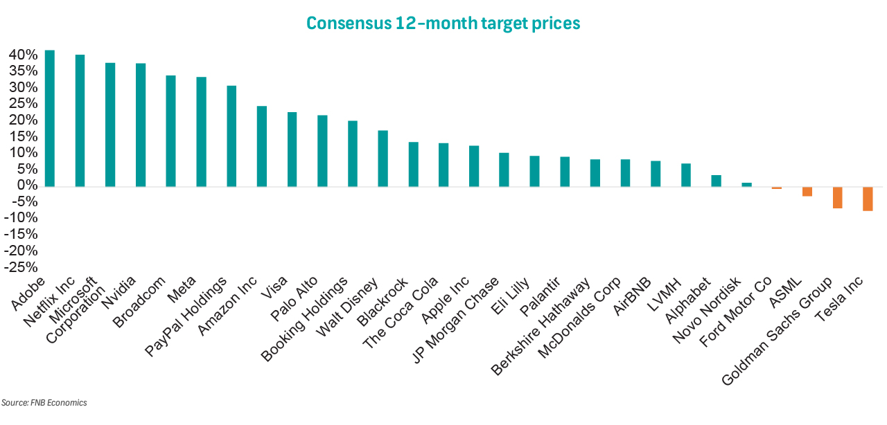 Notable losers were Netflix who fell 20% as a strong 3Q25 filing was dampened by a one-off $619 million charge related to a Brazilian tax dispute. Moreover, pressure on the streaming giant was driven by the Warner Bros deal related uncertainty. Paypal (-11%) also fell after announcing a strategic overhaul and downwardly revising its 4Q25 earnings guidance, against a backdrop of intensifying competition in the checkout market.